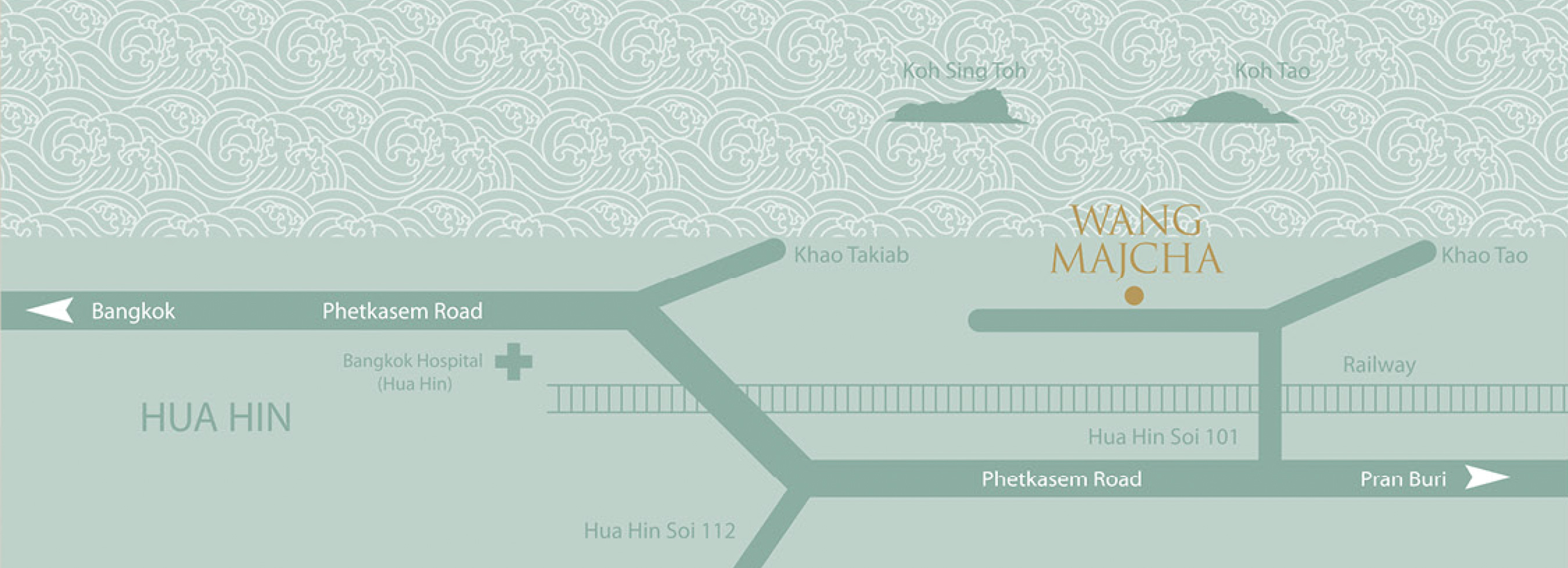 Wang Majcha is located on the pristine beach of Khao Tao, about a 15 minute drive from Hua Hin, Thailand's Royal Seaside Resort, which has a bounty of amenities at your disposal, such as markets, department stores, restaurants, cinemas, hotels, hospitals, golf courses and an airport.