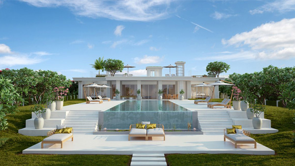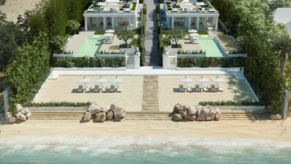 This elegant beachfront villa consists of a 5 bed 2 story house with a rooftop garden with panoramic views.